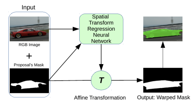 We address the problem of object segment proposal generation, which is a critical step in many instance-level semantic segmentation and scene understanding pipelines. In contrast to prior works that predict binary segment masks from images, we take an alternative refinement approach to improve the quality of a given segment candidate pool. In particular, we propose an efficient deep network that learns 2D spatial transforms to warp an initial object mask towards nearby object region. We formulate this segment refinement task as a regression problem and design a novel feature pooling strategy in our deep network to predict an affine transformation for each object mask. We evaluate our method extensively on two challenging public benchmarks and apply our refinement network to three different initial segment proposal settings. Our results show sizable improvements in average recall across all the settings, achieving the state-of-the-art performances.