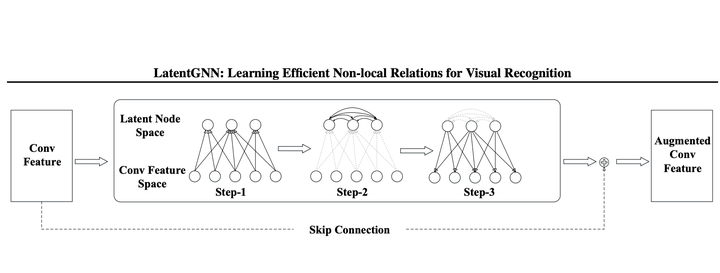 Capturing long-range dependencies in feature representations is crucial for many visual recognition tasks. Despite recent successes of deep convolutional networks, it remains challenging to model non-local context relations between visual features. A promising strategy is to model the feature context by a fully-connected graph neural network(GNN), which augments traditional convolutional features with an estimated non-local context representation. However, most GNN-based approaches require computing a dense graph affinity matrix and hence have difficulty in scaling up to tackle complex real-world visual problems. In this work, we propose an efficient and yet flexible non-local relation representation based on a novel class of graph neural networks. Our key idea is to introduce a latent space to reduce the complexity of graph, which allows us to use a low-rank representation for the graph affinity matrix and to achieve a linear complexity in computation. Extensive experimental evaluations on three major visual recognition tasks show that our method outperforms the prior works with a large margin while maintaining a low computation cost.